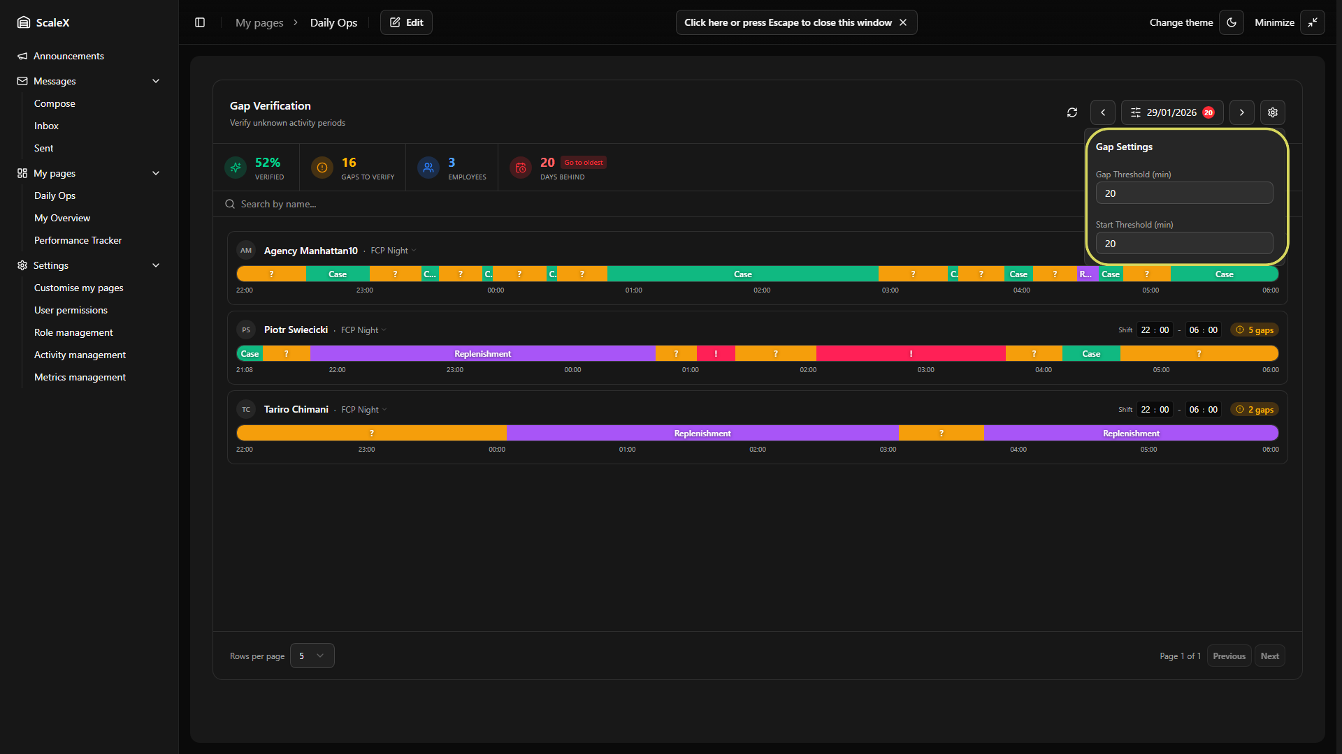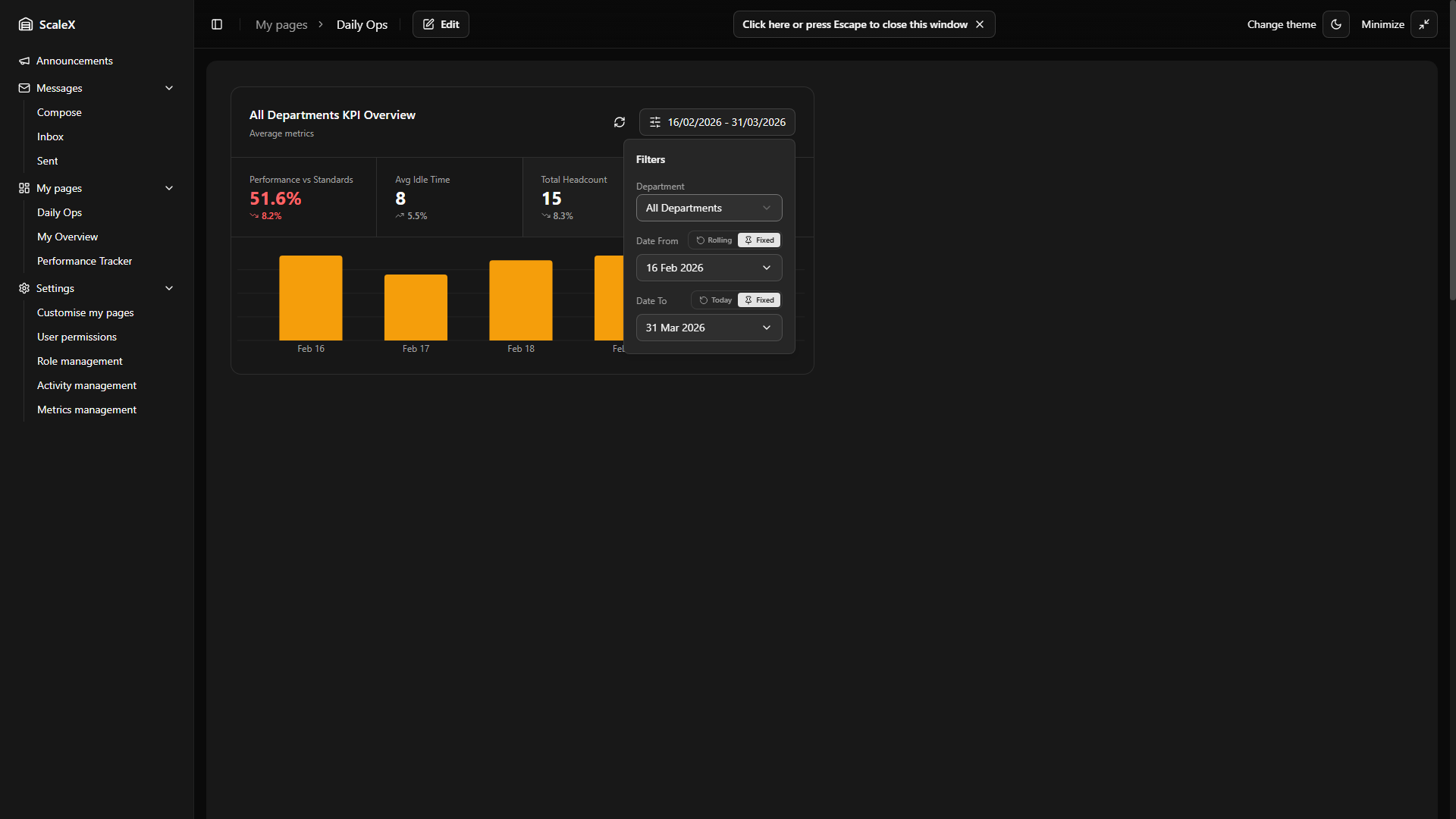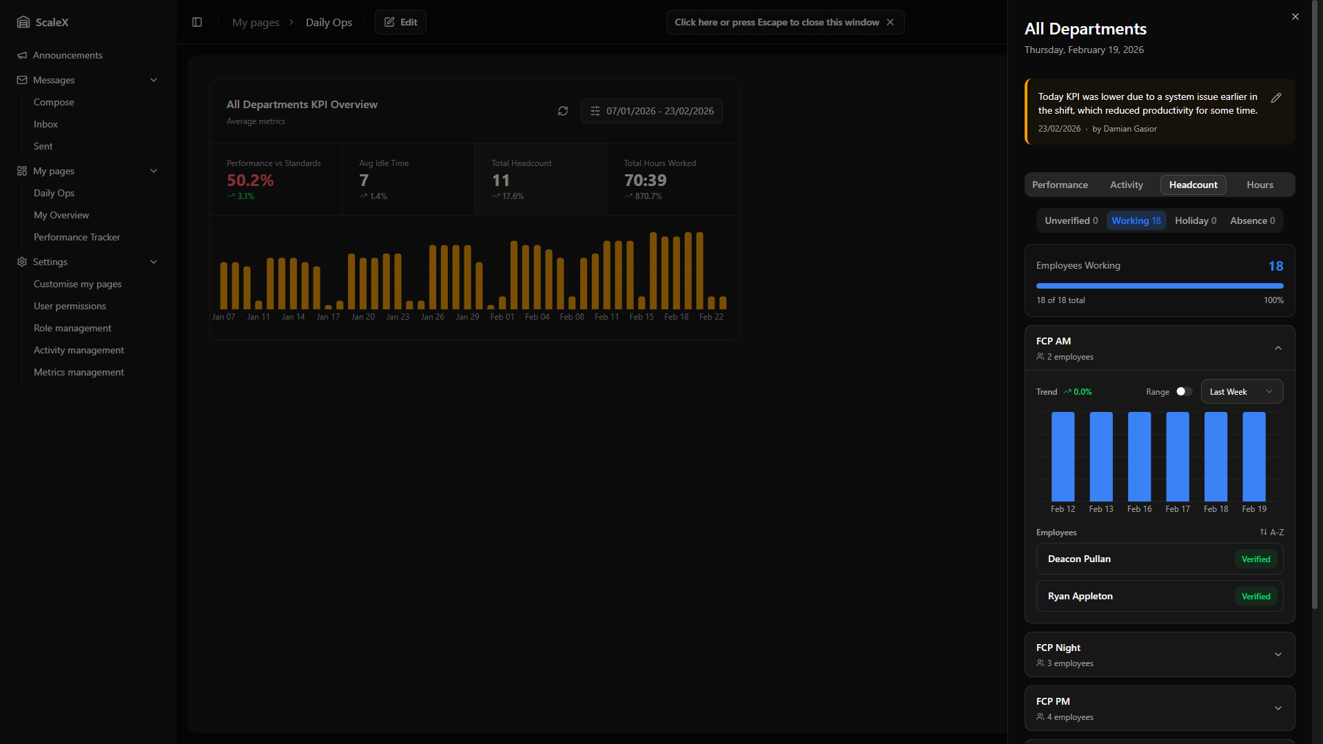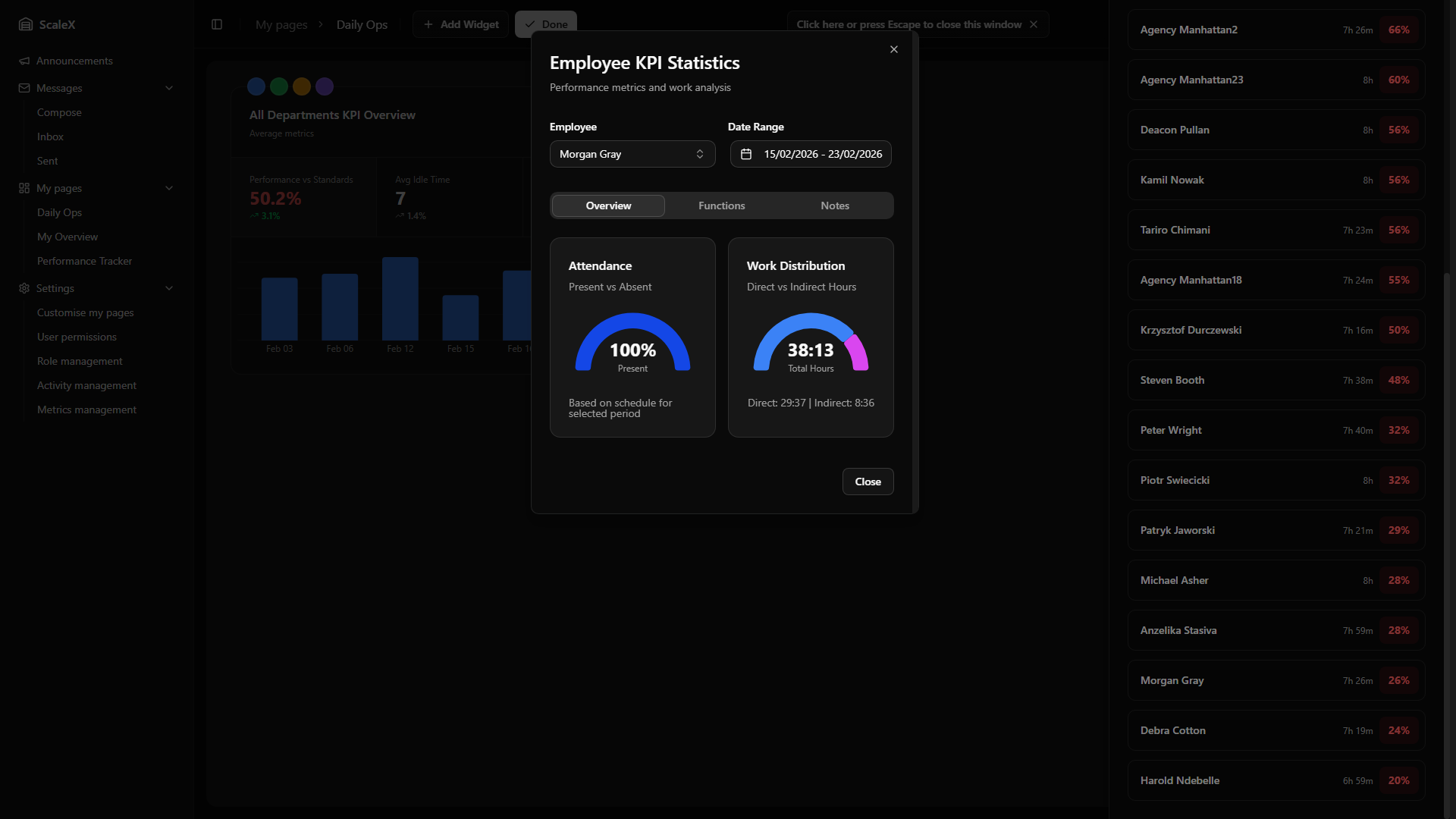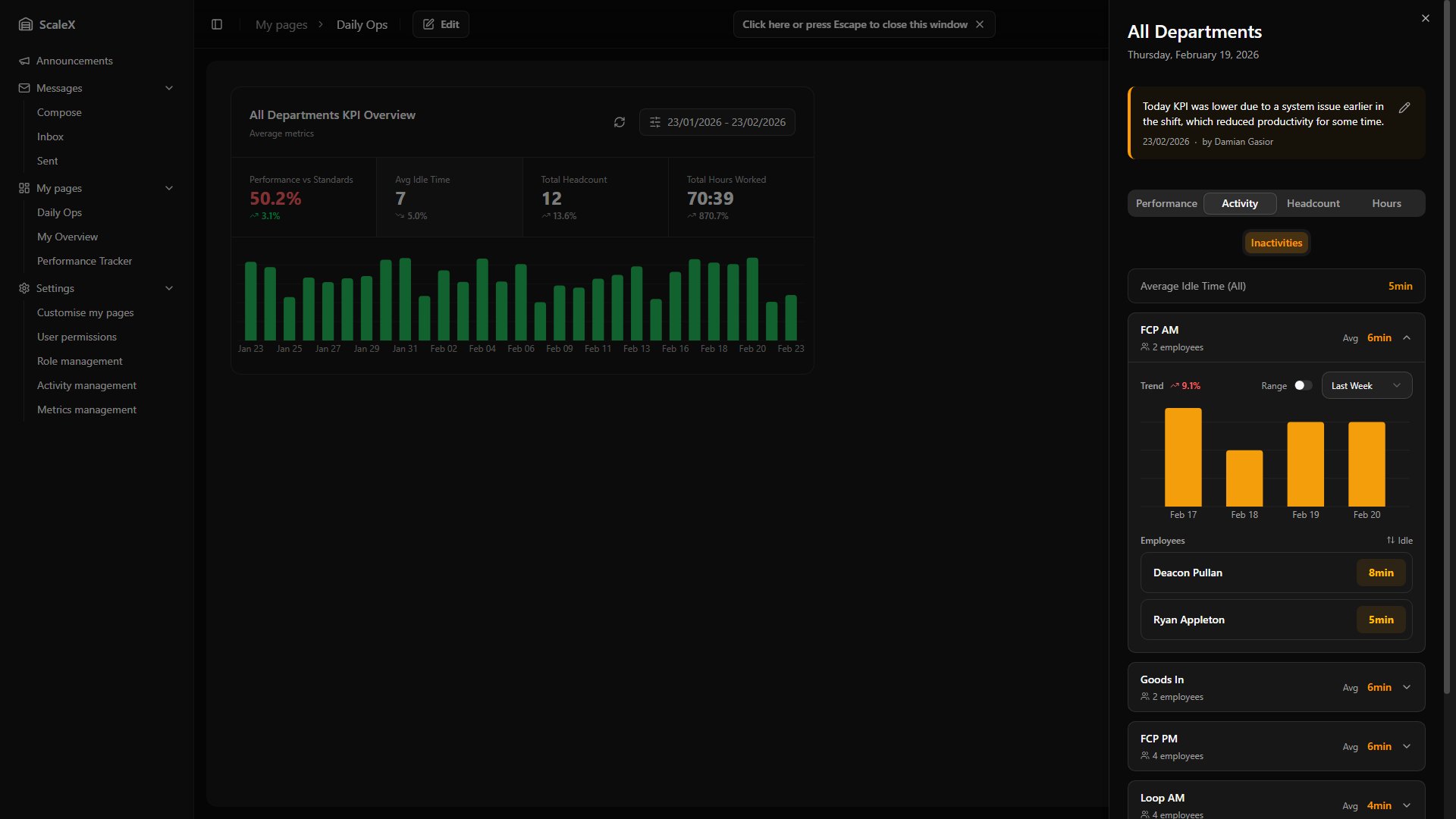 ScaleX extends Manhattan Scale WMS with customisable dashboards, KPI tracking, announcements, internal messaging, and granular permission management — all embedded directly within the Manhattan interface.