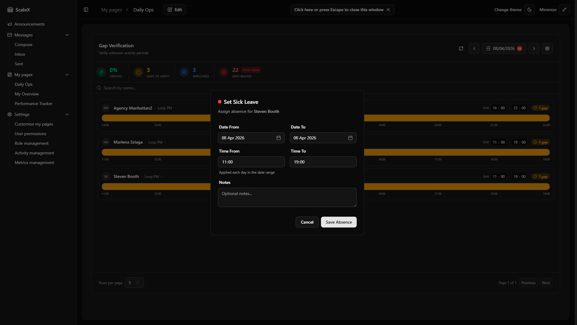 - Per-employee absence type — within each department card, every employee row now displays a badge with their specific absence type (Holiday, Sick Leave, etc.), so leaders can see at a glance why each person is absent.