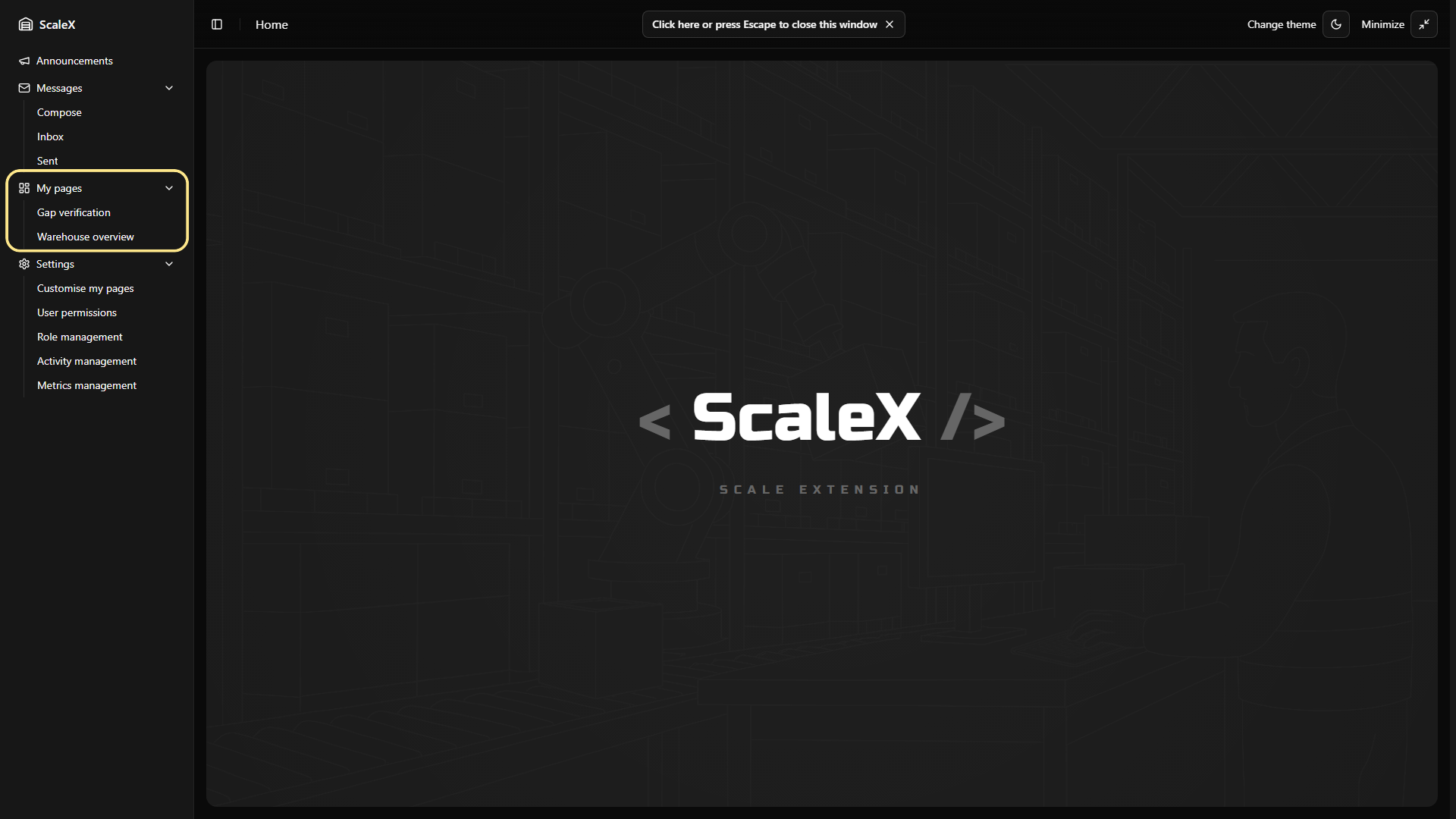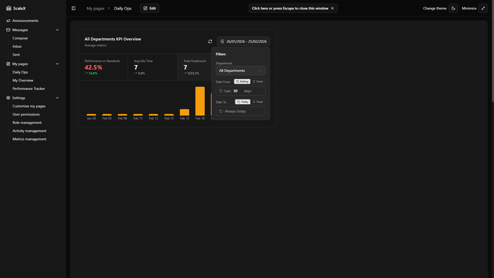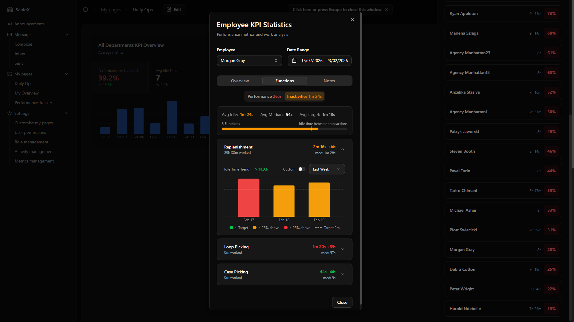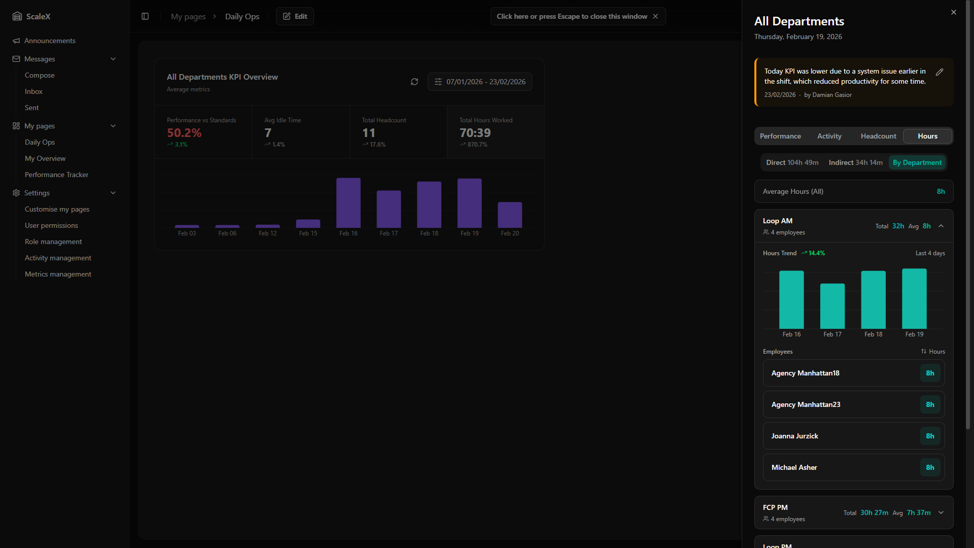 ScaleX extends Manhattan Scale WMS with customisable dashboards, KPI tracking, announcements, internal messaging, and granular permission management — all embedded directly within the Manhattan interface.