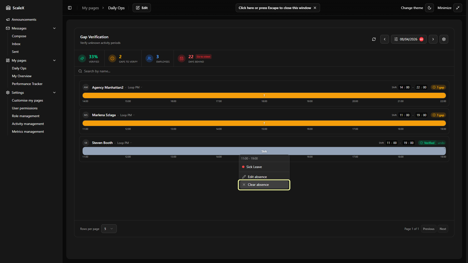 Gap Verification — see Employee Card