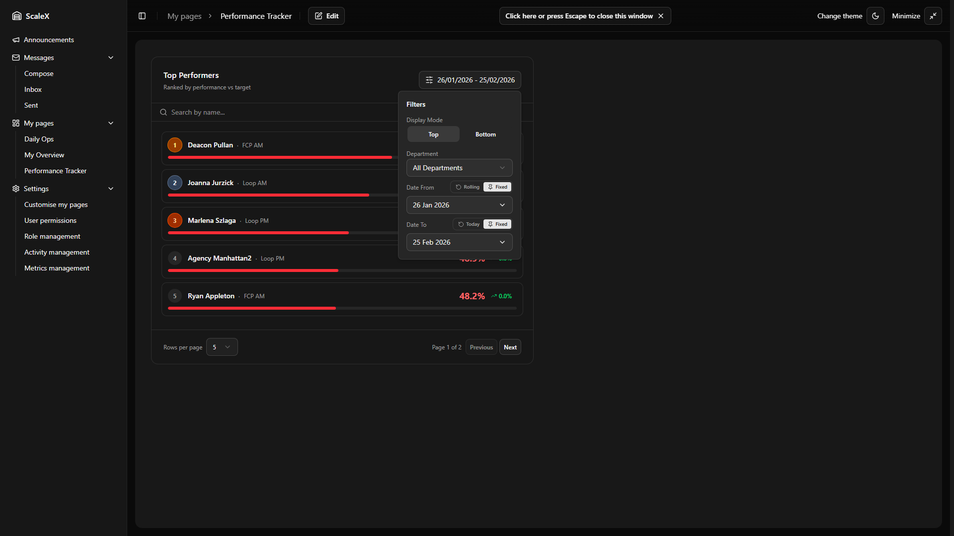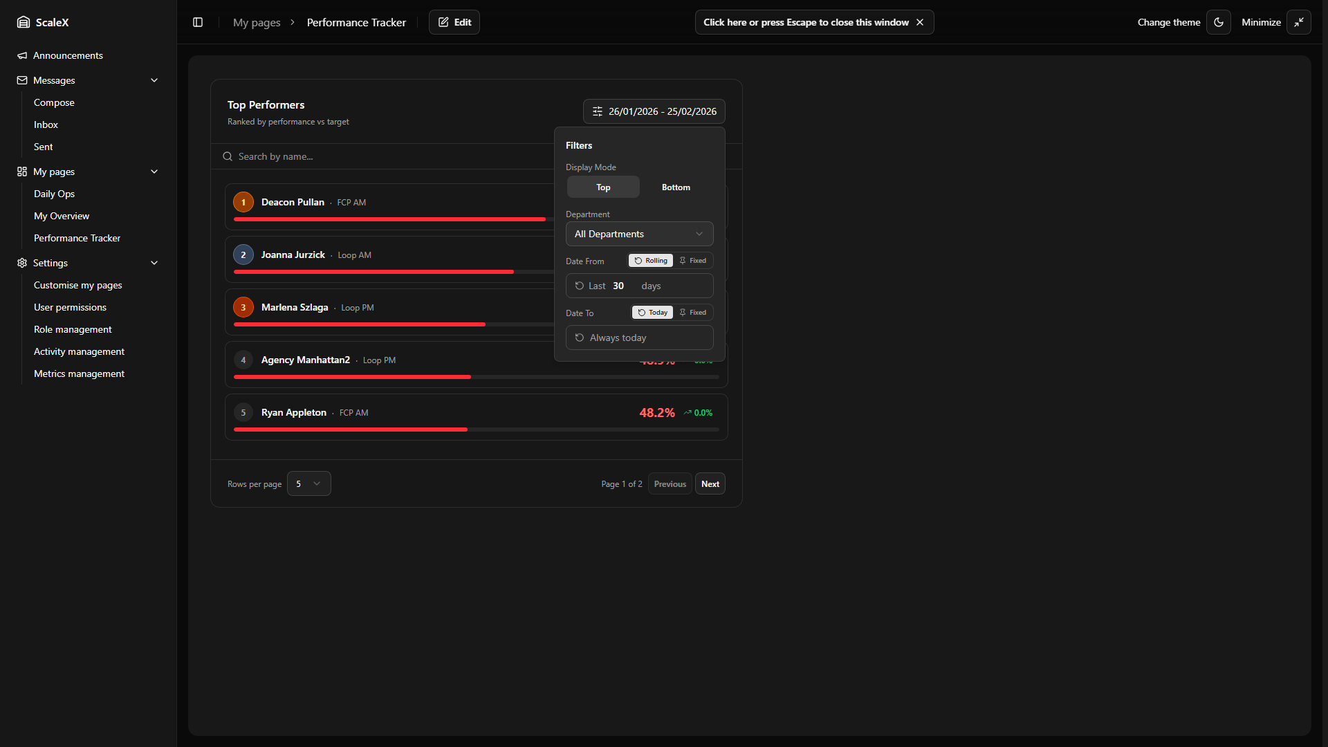 Top/Bottom Performers — see updated date range